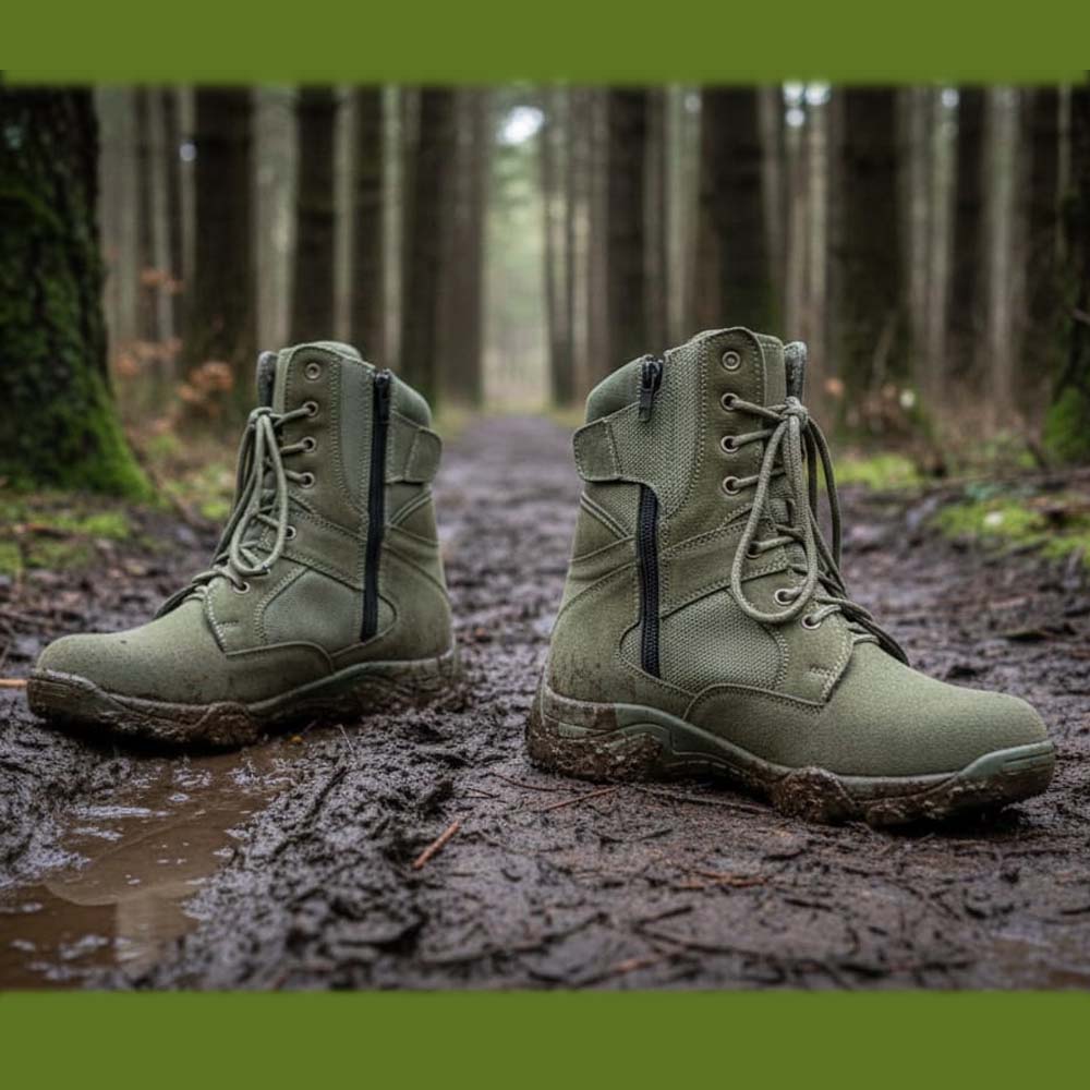 Dual Closure: Traditional front lace-up system combined with a medial side zipper for rapid on/off deployment.