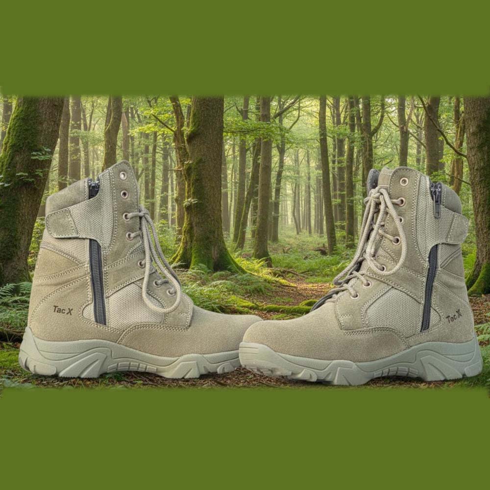 Branding: Custom “Tac X” logo embossed/ printed on the lateral heel counter